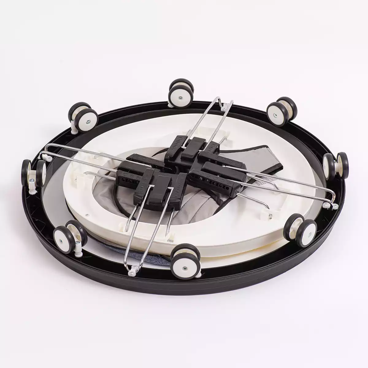 Широкая и устойчивая рама обеспечивает надежную опору, а 8 бесшумных полиуретановых колес с вращением на 360° гарантируют плавный ход без царапин на полу.