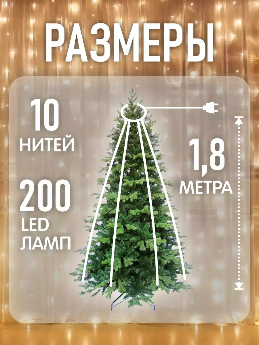 - светодиодная гирлянда 1,8 м 10 нитей 200 led ламп